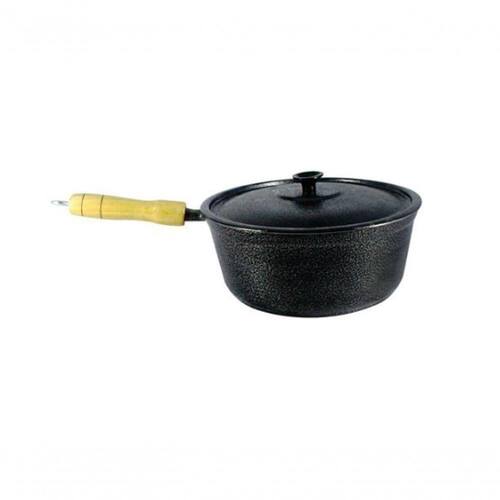 Caçarola Panela De Alumínio Craqueada Cabo De Madeira 28cm Cor:preto