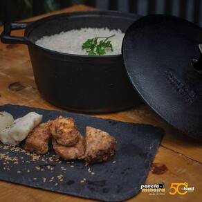 A caçarola de ferro fundido 4 litros da Panela Mineira é a escolha perfeita para preparar aquela receita deliciosa e deixá-la com um sabor caseiro super especial. A excelente distribuição de calor do ferro fundido, torna-a ideal para assar, selar ou cozinhar: de vegetais à carnes. Tudo isso com a praticidade de poder ir do fogão à lenha ao de indução.