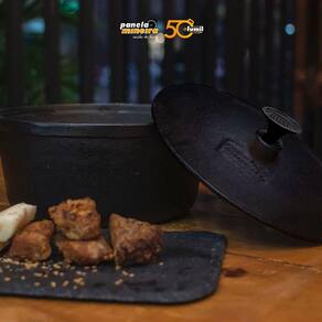 Detalhes do produto: - Os produtos da marca "Panela Mineira" são curados à temperatura de 250°C para que você possa usá-los facilmente após simples lavagem com água corrente; - As alças são espaçosas permitindo o uso de luvas grossas, possibilitando uma transferência segura do fogão para o forno e do forno para a mesa; - Possui revestimento por tinta à base de água que não traz nenhum risco à saúde e permite a transferência de ferro para os alimentos; - A tampa de ferro possui excelente vedação e gotejador no interior promovendo a circulação constante do calor e umidade; - Pode ser levada ao forno, facilitando a finalização das receitas; - Acompanha tampa de ferro.