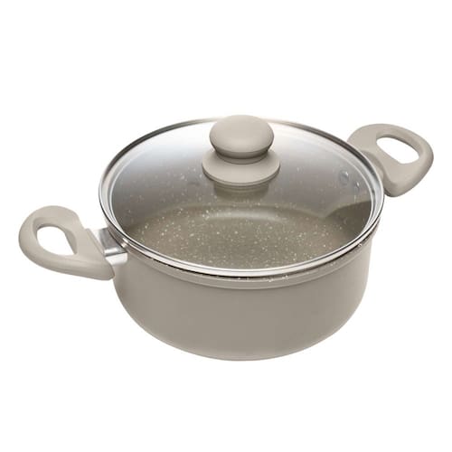 Com seu cor taupe e tampa de vidro, esta caçarola combina funcionalidade e estilo, podendo ser utilizada tanto para cozinhar quanto para servir à mesa com elegância.