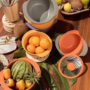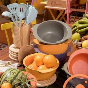 Caçarola Em Cerâmica Linea 28,5cm Oxford Caju - Características Gerais do Produto: • Dimensões: Ø 24x15cm • Capacidade: 3,3L • Material Principal: Cerâmica • Linha: Linea • Informações Adicionais: Pode ser usada no fogão, forno, freezer, geladeira, micro-ondas e lava-louças; Deve ser curada antes do primeiro uso; As tampas acompanham as panelas em todas as indicações de uso; Resistente à mudanças bruscas de temperatura; Mantém a comida aquecida por muito mais tempo; Atóxica; Fórmula Antimicrobiana; Não desbota; Não risca de maneira permanente; Não deforma
