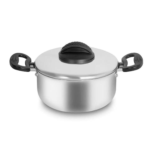 Acabamento externo polido. Alças e pomel (pegador da tampa) confeccionados em baquelite que resiste ao calor propagado pelas paredes das caçarolas ao serem levadas ao fogão. Entretanto e bom lembrar que não podem ser levadas ao forno, que devido as altas temperaturas serão danificados.