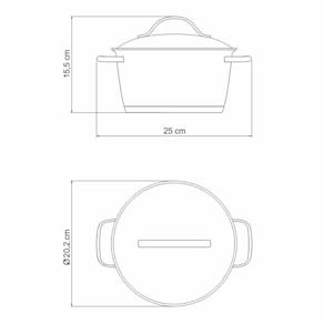 - Total (com tampa): 15,5 cm A x 20,2 cm L x 25 cm P
