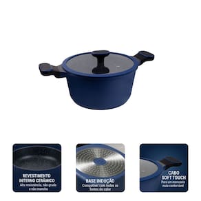 Descrição:Do fogão à mesa com sofisticação! A escolha perfeita para quem busca praticidade sem abrir mão de um design sofisticado e vibrante. Com um visual moderno e cheio de personalidade, a linha Marine Hercules traz elegância e inspiração para o seu dia a dia.Deixe sua cozinha mais linda e funcional! O azul intenso, combinado ao revestimento antiaderente cerâmico, garante uma distribuição de calor impecável, permitindo o preparo de receitas mais saudáveis, com menos óleo. Fabricada em alumínio fundido, cada peça é sinônimo de resistência e durabilidade. Compatível com todos os tipos de fogões — halogênio, convencional e indução — sua base especial oferece versatilidade, adaptando-se a diversas fontes de calor. A pintura resistente a altas temperaturas preserva a estética da panela ao longo do tempo.A linha Marine Hercules é a escolha ideal para quem busca unir modernidade, qualidade e elegância na cozinha. Descubra a linha completa de panelas Hercules e leve para sua casa o melhor em design e funcionalidade. Todas as panelas Hercules possuem certificação INMETRO e são perfeitas tanto para uso intenso quanto doméstico.. Características: - Corpo Em Alumínio De Alta Espessura e Cabo em Baquelite- Espessura: 4mm- Revestimento Antiaderente Cerâmico- Fundo Triplo Especial: Distribui O Calor Uniformemente- certificação INMETRO- Resistente e Durável- Tamanho: Ø 24 cm | Altura: 12 cm | Capacidade: 4,5L Pode ser utilizado em: - Fogão de Indução - Fogão Convencional - Fogão Halogênio - Forno 180°C - Lava Louças