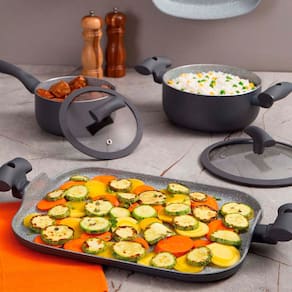 Descrição: A linha Soft Touch da Hercules garante melhor desempenho, funcionalidade e qualidade para a sua cozinha e no preparo das refeições. Com revestimento antiaderente cerâmico, é produzida com materiais resistentes como alumínio, silicone, vidro e baquelite. Ideal para uso em fogão convencional, fogão halogênio e de indução. Não utilizar no forno, micro-ondas, geladeira e freezer. Sua cozinha pode ser prática, saudável e muito bonita. As panelas da Hércules oferecem o que há de mais moderno para o preparo das refeições diárias. Características: Espessura de 3 milímetros Tampa de vidro com acabamento em silicone, que traz sofisticação para a cozinha Cabos em silicone soft touch, que proporcionam maciez e estabilidade, além de serem isotérmicos e não esquentarem Iterior antiaderente em cerâmica, que facilita o preparo e a limpeza, sem liberar componentes tóxicos Construção da panela com fundo especial para utilização em diferentes tipos de fogão Pode ir à lava-louças Pode ser usada em fogões por indução Material: Alumínio, Silicone, Vidro e Baquelite Composição: 1 Caçarola Ø24 x 11 cm – espessura 3mm – 4,5L Especificações: Marca: Hércules; Modelo: Soft Touch PA300-C24CZ; Garantia: 3 meses. ---- Aqui na Casa & Tendência você encontra os melhores utensílios domésticos e tudo que você precisa para sua cozinha ----