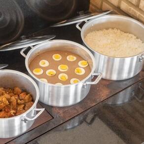 Caçarola hotel é a solução ideal para preparar vários tipos de receitas como arroz, feijão, feijoada, sopas, caldos, frango, doces e outras receitas deliciosas. Ideal para restaurantes, buffets, escolas, hotéis, cozinhas industriais e demais estabelecimentos comerciais. Caçarola em alumínio resistente, de excelente qualidade, material muito popular por oferecer um excelente custo benefício e por permitir um design versátil e prático.
