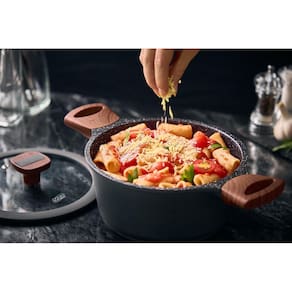 Se você busca por panelas que facilitam o seu dia a dia, resistentes e saudáveis, a Linha Titanium é perfeita Com a nova geração de antiaderente cerâmico: Cerâmic-Flon, as panelas são livres de metais pesados e elementos químicos prejudiciais à saúde, exigem menos uso de óleo, não deixam os alimentos grudarem e facilitam a limpeza. Os cabos e alças são revestidos com Soft-Touch, não esquentam e proporcionam um toque macio e confortável durante o uso. Possuem tampas de vidro temperado com saída para o vapor. Sua composição em alumínio injetado de 5mm de espessura, garante aquecimento uniforme e seu revestimento cerâmico marmorizado e assegura alta performance em antiaderência para o melhor desempenho durante o uso. Acabamento sofisticado, esse é pra surpreender os convidados, heinCaçarola 28cm/6,4L.Comaptível com todos os tipos de fogões.Revestimento cerâmico.Antiaderente.Cabos antitérmicos.Tampa com duas saídas de vapor.