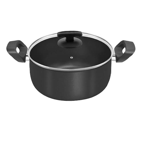 Caçarola Objetiva nº 22 Com Tampa de Vidro 0.295 Dona Chefa CACAROLA OBJETIVA 22 C/TPA VIDRO 0.295 DONA CHEFA A Caçarola Objetiva conta com uma dobra do alumínio na borda, tornando a panela mais reforçada e resistente. Todas as caçarolas são fabricadas em alumínio e revestidas interna e externamente com 5 camadas de antiaderente. Acompanham tampa de vidro com furo para a saída do vapor. As alças e pomeis são feitos em baquelite antitérmico. Itens incluso: