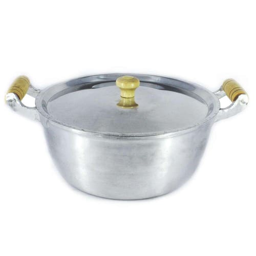 01 Caçarola Panela Alumínio Polido Alça Madeira Bojuda 18cm