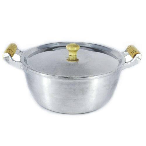 Caçarola Panela Alumínio Polido Alça Madeira Bojuda 26cm