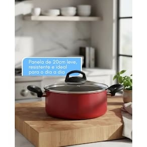 A Caçarola Enjoy Antiaderente Vermelha de 20 cm da Alegrete foi desenvolvida para quem busca praticidade, beleza e desempenho na cozinha. Seu revestimento antiaderente permite cozinhar com menos óleo, garantindo refeições mais saudáveis e facilitando a limpeza após o uso. A tampa de vidro temperado proporciona mais resistência e permite acompanhar o cozimento sem abrir a panela. O orifício vaporizador ajuda a controlar o vapor, deixando o arroz soltinho e melhorando o preparo dos alimentos.É uma panela de 20cm leve, resistente e ideal para o dia a dia. Os cabos e alças reforçados e produzidos em banquelite, oferecem segurança e conforto ao cozinhar, pois são resistentes ao calor.Marca:AlegreteCapacidade: 2,5 litrosMedidas: 31,5×21×9,5 cmPeso: 0,715 kg