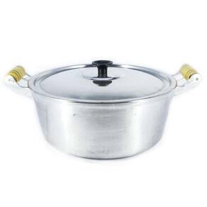 Caçarola Panela Reta Alumínio Polido Alça Madeira 38cm