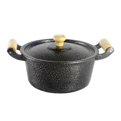 01 Caçarola Panela Reta Craqueada de Alumínio Alça Madeira Preta 16cm