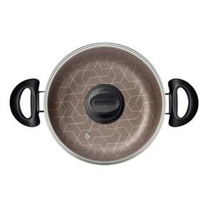 A caçarola é produzida em alumínio com revestimento interno e externo em antiaderente Starflon Max, na cor vermelho, ela possui tampa de vidro, tem 24 centímetros de diâmetro e possui capacidade para 4,9 litros.