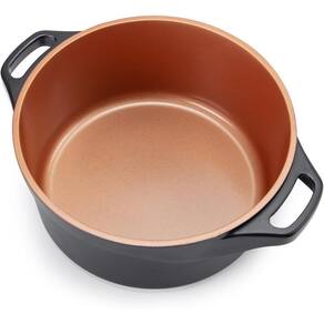 Caçarola Premier Black 28cm Ceramico - Le Cook Perfeita para fazer cozidos e assados e também criada para assar pães e bolos, diretamente na boca do fogão. Sua PARTE EXTERNA é feita de alumínio de grande espessura e alta densidade melhor condução térmica e rápida indução e com fundo resistente para ser utilizada em todos os tipos de fogões: elétrico, a gás, forno, vitrocerâmico e indução.