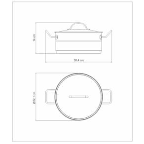Caçarola Professional Rasa 20 cm 2,9 L em Aço Inox Fundo Triplo Detalhe Satinado Tramontina - Especificações Técnicas