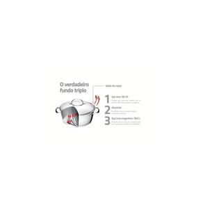 INFORMAÇÕES GERAIS Mais saudável: por ser feita de aço inoxidável, a caçarola Tramontina não libera nenhum tipo de resíduo nas suas receitas.Fácil de usar: uma caçarola prática para todas as suas receitas e que faz bonito em qualquer tipo de fogão: gás, elétrico, vitrocerâmico e indução. Ainda possui tampa com saída de vapor e encaixe perfeito.Mais durável: o inox Tramontina é uma matéria-prima nobre, resistente e que vai fazer bonito por muito mais tempo na cozinha. Alças fixadas por solda-ponto, com maior reforço. Alças longas em aço inox para manuseio profissional.Economiza tempo e energia: o segredo está no fundo triplo (aço inox + alumínio + aço inox), que distribui o calor uniformemente, proporcionando um cozimento mais rápido. Por isso, você pode manter o fogo baixo durante todo o preparo e, assim, poupar energia. Além disso, a panela toda em aço inox pode ir ao forno para gratinar ou finalizar pratos, na temperatura máxima de 260°C.Fácil de limpar: deixar sua caçarola brilhando é simples, você só precisa de água, sabão e uma esponja macia. Se preferir, é só colocar na máquina de lavar.