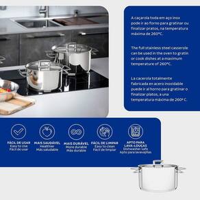 Pode ir ao forno?: Sim, para gratinar ou finalizar pratos na temperatura máxima de 260C.
