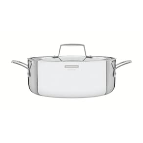 O preparo dos alimentos vai ganhar um valor diferenciado com a Caçarola Tramontina Rasa em Aço Inox Corpo Triplo com Tampa e Alças 4,7 L da Linha Grano. Pensada em aliar tecnologia de ponta com design sofisticado, ela é a escolha perfeita para preparar seus pratos. Totalmente produzida em aço inox, não solta resíduos e possui acabamento em alto brilho, sendo ideal para ser levada à mesa. Com o corpo triplo (aço inox + alumínio + aço inox) distribui o calor uniformemente, proporcionando um cozimento mais rápido e uniforme, deixando os alimentos aquecidos por mais tempo e economizando energia. É muito prática também na hora da limpeza, por seu desenho limpo e sem cantos facilita a higienização do produto e pode ser lavada diariamente na máquina de lavar louças. O design moderno é visto na tampa com encaixe perfeito. Caçarola rasa, possui 24 cm de diâmetro. É versátil, podendo ser utilizada em fogões à gás, elétricos, vitrocerâmicos e por indução.