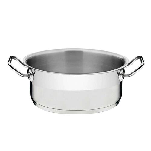 Caçarola rasa sem tampa 28 cm 7,13l Professional.Orientações1. Totalmente feita de aço inox, não solta nenhum resíduo nos alimentos, mantendo-os saudáveis. Seu desenho limpo e sem cantos torna a limpeza muito mais fácil.