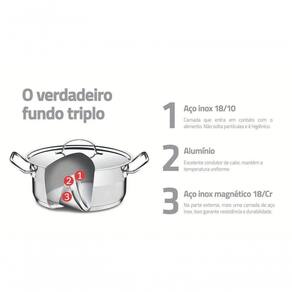 - O fundo triplo (aço inox + alumínio + aço inox) distribui o calor uniformemente, proporcionando um cozimento mais rápido e uniforme, economizando energia e deixando os alimentos aquecidos por mais tempo.