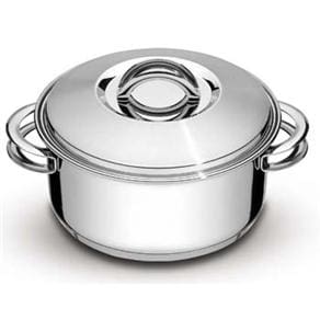 Caçarola totalmente feito em aço inox, não solta nenhum resíduo nos alimentos. Seu desenho limpo e sem cantos torna a limpeza muito mais fácil.