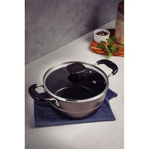 Para preparar deliciosos legumes refogados ou um risoto cremoso e saboroso, a caçarola Tramontina Sicília em alumínio com revestimento interno e externo em antiaderente Starflon Excellent avelã 20 centímetros de diâmetro 2,4 litros é indispensável. Produzida em alumínio com revestimento antiaderente Starflon Excellent, ela vai lhe garantir o melhor para a hora de preparar suas refeições: cozimento rápido e sem grudar na superfície. Suas alças são em baquelite antitérmico, não aquecem e proporcionam um manuseio muito mais confortável e seguro. Ela ainda é fácil de limpar, mais durável, não prejudicial a saúde e pode ser levada à máquina de lavar louças, o que a torna a escolha ideal para completar sua cozinha!
