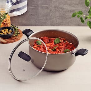 Especificações Gerais do Produto: Pegador / Cabo: Baquelite antitérmico com acabamento soft-touch e nylon Dimensões AxLxP (mm): 171,7x253,5x385 Cor: Amêndoa Material: Alumínio e baquelite Garantia: 90 dias junto ao fabricante Referência: 28572424 Tecnologia da Panela: Starflon Max Pode ir à Máquina de Lavar Louças?: Não Capacidade da Panela: 4,9L Linha: Milazzo Espessura: 1,8 mm Revestimento Interno: Antiaderente Tipo de Fogão: Gás, elétricos e vitrocerâmicos (resistência elétrica) Tampa: Sim, de vidro com saída de vapor