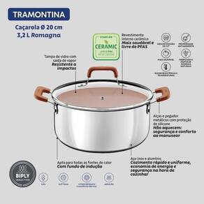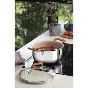 A caçarola Tramontina Romagna com revestimento cerâmico marfim, 20 centímetros de diâmetro e capacidade de 3,2 litros, é ideal para preparar porções médias de receitas como ensopados, molhos e cozidos. Seu revestimento interno cerâmico proporciona cozimento uniforme e facilita a limpeza no dia a dia. Equipada com a tecnologia Biply Induction, que combina aço inox e alumínio, ela distribui o calor de forma eficiente e pode ser usada em todos os tipos de fogões, inclusive os de indução. As alças metálicas com proteção de silicone garantem conforto e no manuseio. Um item prático e versátil para tornar sua rotina na cozinha mais simples e funcional.