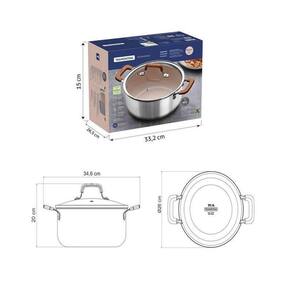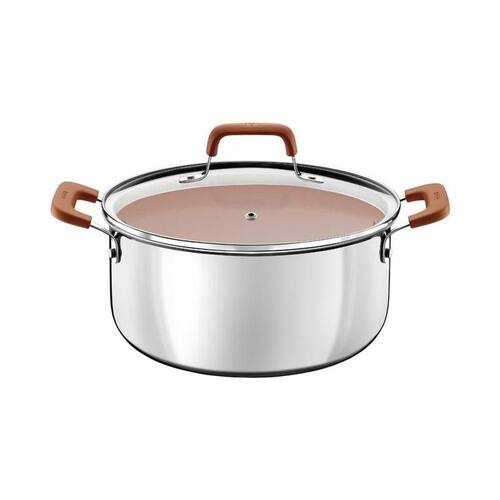 A caçarola Tramontina Romagna com revestimento cerâmico marfim, 24 centímetros de diâmetro e capacidade de 5,24 litros, é ideal para quem gosta de preparar grandes receitas com facilidade. Indicada para ensopados, massas e carnes, ela atende bem quem costuma cozinhar para a família ou receber convidados. O revestimento cerâmico contribui para um cozimento mais uniforme e facilita a limpeza. A tecnologia Biply Induction, que combina aço inox e alumínio, distribui o calor de maneira eficiente e permite o uso em todos os tipos de fogões, inclusive os de indução. As alças metálicas com proteção de silicone oferecem e conforto no manuseio. O visual moderno e a construção robusta completam o conjunto, garantindo desempenho e praticidade em todas as ocasiões.