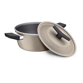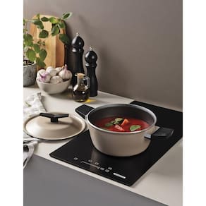 Para cozimentos mais rápidos e uniformes, a caçarola Tramontina Spezia Induction em alumínio com revestimento interno e externo em antiaderente Starflon Excellent areia 20 centímetros di diâmetro e 2,4 litros de capacidade é ideal. Fabricada em alumínio com revestimento Starflon Excellent, facilita a limpeza evitando que os alimentos grudem.