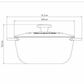 - Ferro fundido esmaltado com espessura de 3,2 mm que distribuir o calor de maneira rápida e uniforme.