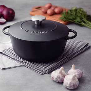 - Desenvolvida com corpo em ferro fundido esmaltado revestido com antiaderente Starflon Excellent, a caçarola cozinha os alimentos de maneira uniforme, evitando que eles grudem em sua superfície.