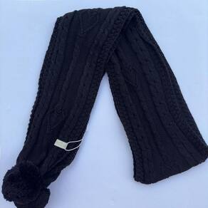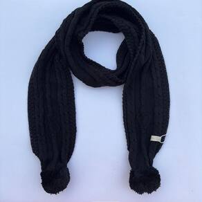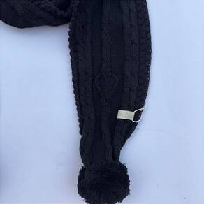 Cachecol de Tricô Para Meninas Com Pompom Preto - Preto - M