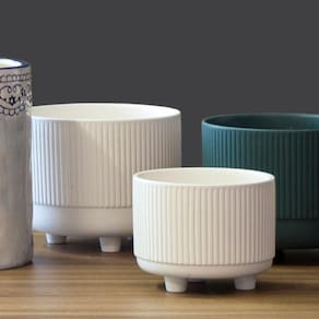 Esse cachepô é uma peça produzida em cerâmica de qualidade e com alto relevo tipo ondulações na superfície. Possui três pés e é ideal para decorar com estilo e criatividade diversos ambientes internos e externos.