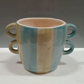 Altura: 15 cm Largura: 22 cm Profundidade: 15 cm Peso: 0,81 Kg Diâmetro da Base: 11,5 cm Diâmetro do Corpo: 15 cm Diâmetro do Topo: 13,5 cm Material: Cerâmica Cor: Azul