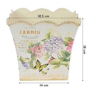 Características* Estilo Vintage/Retrô * Material: Chapa Galvanizada de Ferro e Tinta * Bordas com Contornos Trabalhados * Altura: 18 cm * Boca: 18, 5cm * Base: 14 cm