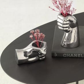 Cachepot Mão Prata Em Cerâmica 7,5 x 15cm D'Rossi