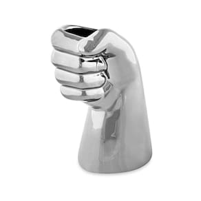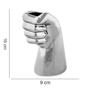 Cachepot "Mão" em Cerâmica Prata 16x9 cm - D'Rossi