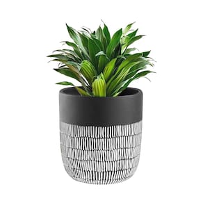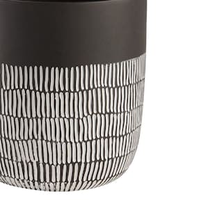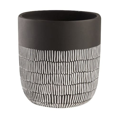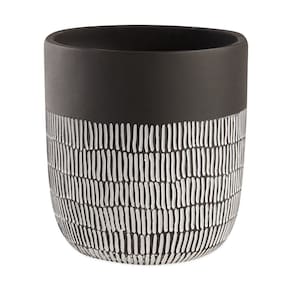 Cachepot em Cimento com Listras Decorativo 21x21cm - Cor: Preto