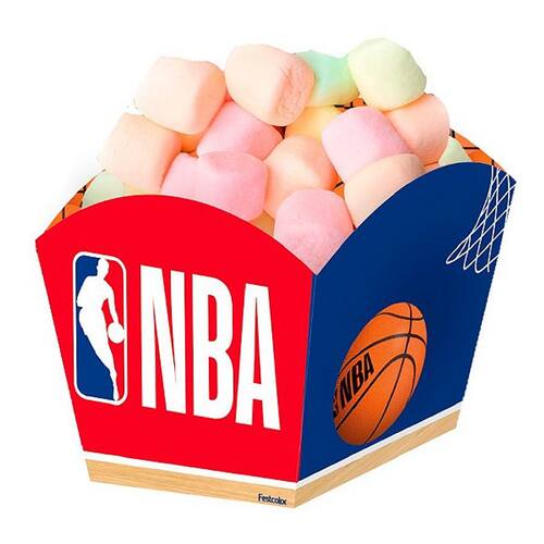 Cachepot NBA C/8 Festcolor. Faça da sua festa uma partida épica de basquete da NBA! Os melhores times do mundo na sua comemoração! O cachepot pode ser utilizado como centro de mesa (com balões e guloseimas), e também para servir pipoca, biscoito, docinho e salgadinho.