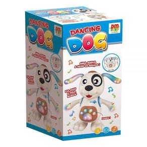 Cachorro dançante é um divertido brinquedo musical, ocachorrinho anda, mexe os braços e as orelhas e acende luzes para a diversão da criançada.
