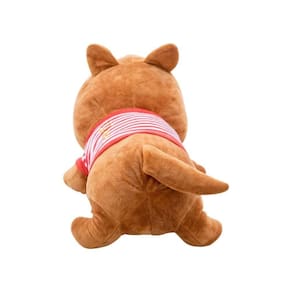 Sabe aquele cachorrinho super fofo que você pode abraçar o tempo todo que não faz bagunça não morde e nem faz caquinha? Claro que não é um cachorrinho de verdade mas é uma fofura em forma de pelúcia. Ele vem com uma roupinha vermelha listrada e com um bordado escrito love em amarelo. Com carinha de sono e a linguinha pra fora ele já vem deitadinho. Nem reparou no tamanho do focinho do bicho né? Sem dúvida é um presente super fofo que todo mundo irá amar. Material: poliéster; Enchimento: fibra de poliéster; Produto certificado por Órgão acreditado pela CGCRE do INMETRO