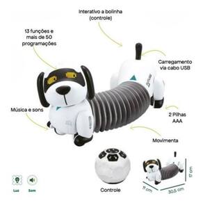 Com 20 cm de altura e 25 cm de comprimento, o Cachorro Interativo é compacto e fácil de manusear, ideal para brincadeiras em casa ou em ambientes externos. Além disso, sua capacidade de programação permite que os pequenos explorem ainda mais suas habilidades de controle e coordenação.