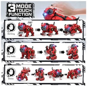 Fácil de Operar: Ao ser ligado, o robô cão de controle remoto late e dança com música, desligando automaticamente após 3 bipes quando não há operação por 5 minutos. O manual de instruções incluído ajuda as crianças a seguir todas as etapas detalhadas do filhote robô, e o controlador possui instruções escritas para uma operação fácil e conveniente.