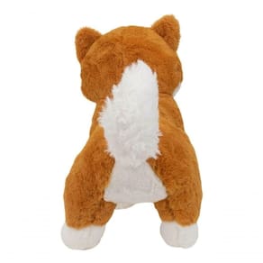 Bichinho de pelúcia no formato do cachorro japonês da raça Shiba com 43 cm de comprimento levantado. Olhos e nariz de plástico. Material: poliéster; Enchimento: fibra de poliéster; Produto certificado por Órgão acreditado pela CGCRE do INMETRO