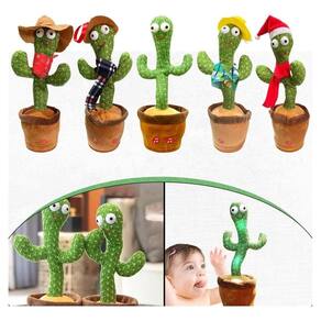 Especificações: Medidas: 30x10x12 cm Modelo: Cacto dançante Material: Pelúcia, Plush macio, confortável, e não toxico. Cor: Verde Pode tocar, dançar, mover, girar e acender luzes Feito de material seguro: Plush macio, confortável, e não toxico.
