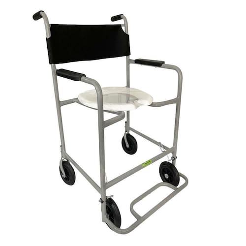 Cad banho simples 01 pe fixo encosto inj Cadeira higiênica simples A cadeira de banho é de uso específico sanitário e de banho. Com estrutura em aço carbono e pintura epóxi, é ideal para uso higiênico. Tem a função de atender pessoas com deficiência física, dependentes de ajuda Em atividades da vida diária, em especial, higiene pessoal. Apoio de braços reto e de pés fixo , encosto em nylon e freios bilaterais. As rodas dianteiras e traseiras são de aro 6 giratórias com pneus de borracha maciços posicionadas na parte interna da cadeira. Possui assento sanitário removível. Ean: 7893727503663