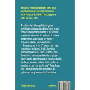 Esta autobiografia tem origem na curiosidade irrequieta do diretor Werner Herzog , no seu fascínio com as questões fundamentais da existência e na observação minuciosa dos fenômenos da natureza e do ser humano, características que também marcam e definem sua aclamada obra cinematográfica. Nos episódios narrados, os personagens são familiares, amigos, colaboradores, amores e até mesmo os heróis míticos da infância passada em Sachrang, “a mais remota de todas as aldeias na Baviera” — onde o cineasta aprendeu a ordenhar vacas muito antes de fazer filmes. As memórias aqui são acompanhadas pela constatação de que o destino, tal qual um roteiro cinematográfico, sempre reserva algumas reviravoltas. Composto de luzes e sombras, este livro traz a caverna de Chauvet, preservada no escuro de seu interior, ou o poço fundo em que Herzog muitas vezes se viu desempenhando o “trabalho estranho que os filmes exigem”. Aqui cintilam lanternas de carbureto e o cosmo magnífico com o qual um dia ele se reencontrou e teve a certeza de que sua vida não seria ordinária. Ao revisitar personagens e expedições, temas, filmes, óperas, livros e momentos de alta tensão em que, para realizar sua obra, se manteve como um equilibrista cercado por abismos, Werner Herzog volta a mergulhar em profundezas insondáveis para de lá emergir com a mais fantástica das histórias: a sua própria.