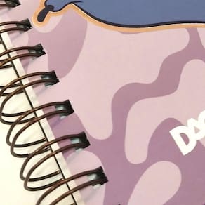 Cor: estampado Formato: 20 cm x 27,5 cm x 3 cm Quantidade: unitário Composição: papel offset 90g Detalhes: com 80 folhas reposicionáveis 90g 40 azul + 40 rosa , wire-o, capa com aplicação de hot stamping, material resistente e elástico para fechamento.